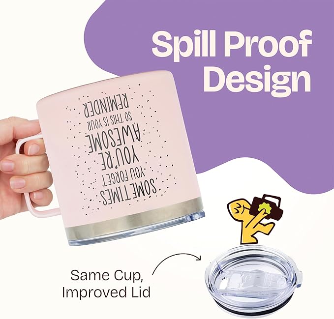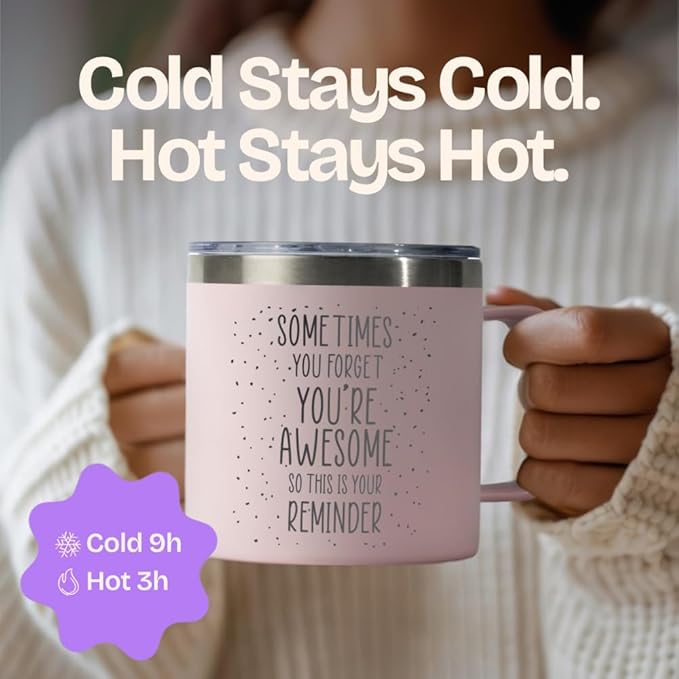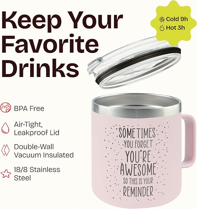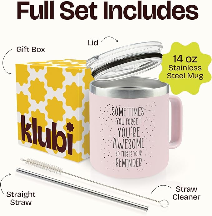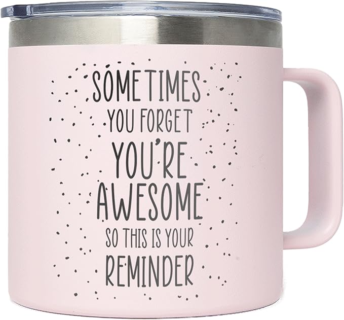 KLUBI Last Minute Christmas Gift for Women - Cute Pink Sometimes You Forget Your Awesome Gifts for Christmas, Her, Coworkers, Boss Day, Nurses Week College Girl Gift Ideas for Xmas Coffee Cup 14 Ounce