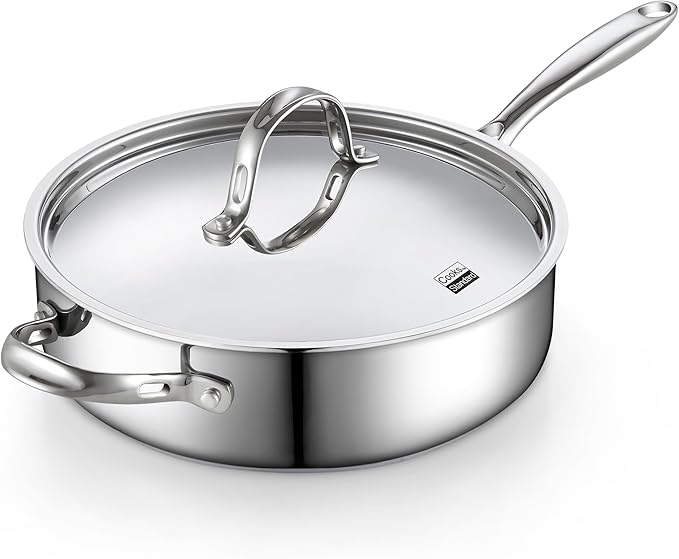 Cooks Standard 4-Quart Stainless Steel Sauté Pan with Lid, 10.5-inch Deep Frying Pan Induction Cookware, Oven Safe Large Skillet Jumbo Cooker with Stay-Cool Helper Handle