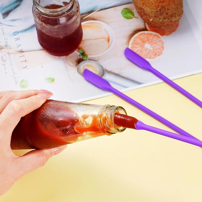 4pcs Mini Silicone Spatula Set, 3 Size Makeup Spatula Small Rubber Spatula for Thin Jar Skinny Openings Bottles, Tiny Scraper for Kitchen and Cosmetic, Multipurpose Scraping Mixing Tools (Purple)