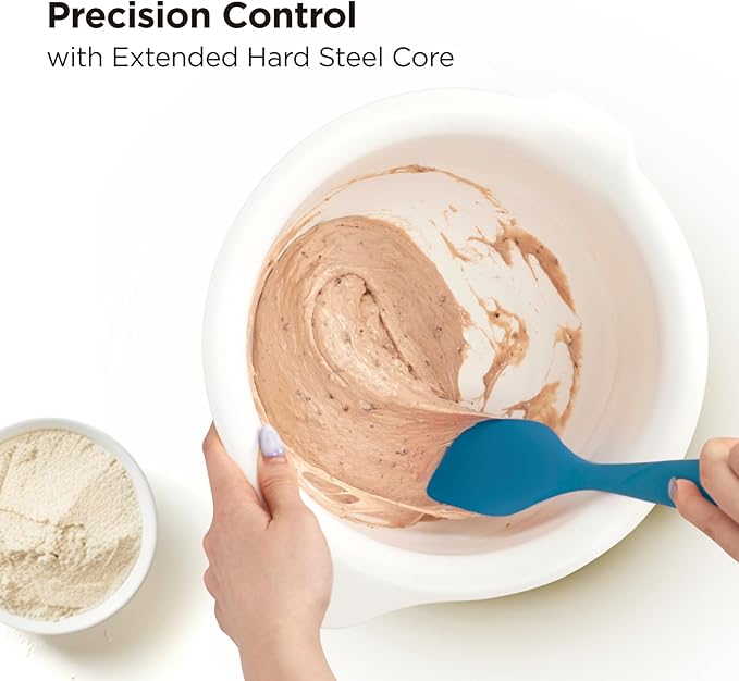 Kitchen Mama WaltzGrip Platinum Silicone Scraping Spatula: Heat Resistant, Seamless, Non Stick for Frying Pan Cookware, Safe, Flexible Bowl Scraper - Ideal for Mixing, Baking, Stirring (Blue)