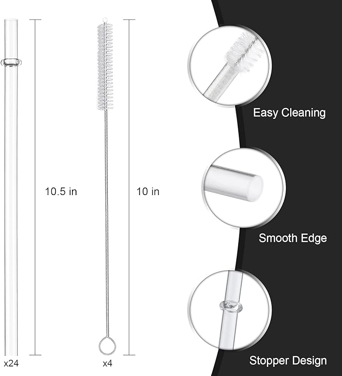 About This Product Includes - 24 pcs clear reusable plastic straws and 4 straw cleaning brushes. Size - Straw: 10.5... Read more