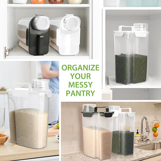 Rice Storage Container, 5 to 10lb Dry Food Airtight Dispenser, Pet Dog Cat Food Canister, BPA Free Clear Plastic Kitchen and Pantry Organization Bin for Oatmeal, Cereal, Pasta, Flour White