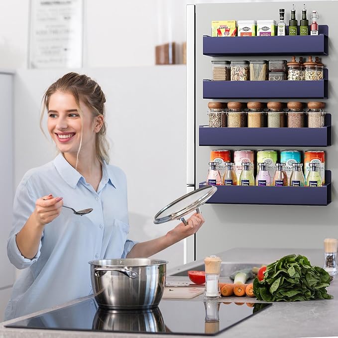 4 Pack Moveable Fridge Magnetic Spice Racks,Metal Purple