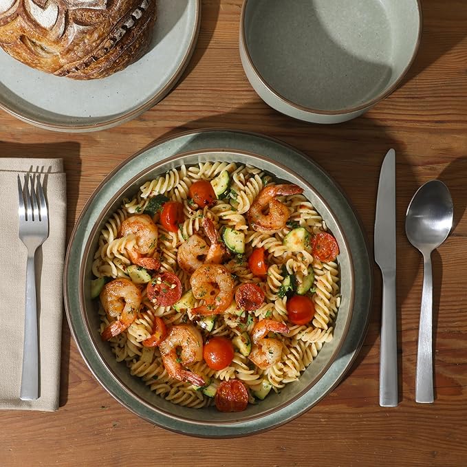 Gibson Elite Gelston Stoneware Matte Reactive Glaze 16 Piece (Service for 4) Plates and Bowl Dinnerware Set - Green