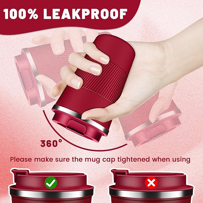 • Easy Clean & Comfort Grip: The large-opening design make insulated coffee tumbler mug easy to clean, the travel coffee mug comes with an eco-friendly one-hand flip-top snap, spiral silicone sleeve for easyily carry out, makes drinking with one hand comfortable and secure, sealing silicone strip and a screw lid design to prevent spills.