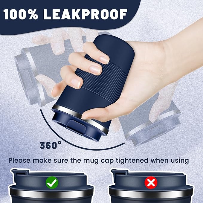 • Easy Clean & Comfort Grip: The large-opening design make insulated coffee tumbler mug easy to clean, the travel coffee mug comes with an eco-friendly one-hand flip-top snap, spiral silicone sleeve for easyily carry out, makes drinking with one hand comfortable and secure, sealing silicone strip and a screw lid design to prevent spills.