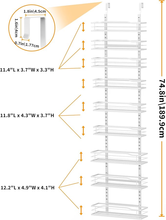 Moforoco White Narrow 9-Tier Over The Door Pantry Organizer, Pantry Organization and Storage, Metal Hanging Basket Wall Spice Rack Seasoning Shelves, 12.2"
