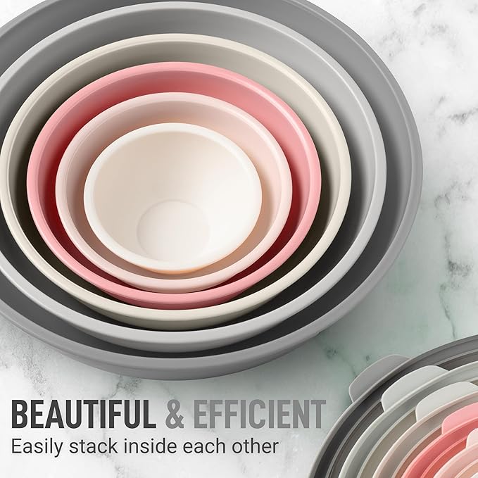 Zulay Kitchen 12 Piece Plastic Mixing Bowls with Lids Set - Colorful Mixing Bowl Set for Kitchen - Nesting Bowls with Lids Set - Microwave and Freezer Safe (Pink Ombre)