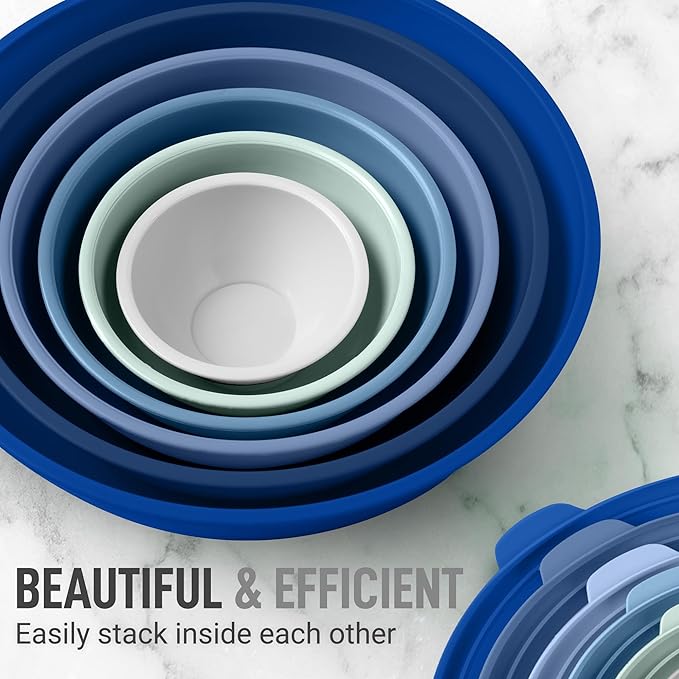 Zulay Kitchen 12 Piece Plastic Mixing Bowls with Leak-Proof Lids Set - Microwave and Freezer Safe Kitchen Mixing Bowls for Preparing, Serving and Storing - Large Nesting Bowls (Blue Ombre)