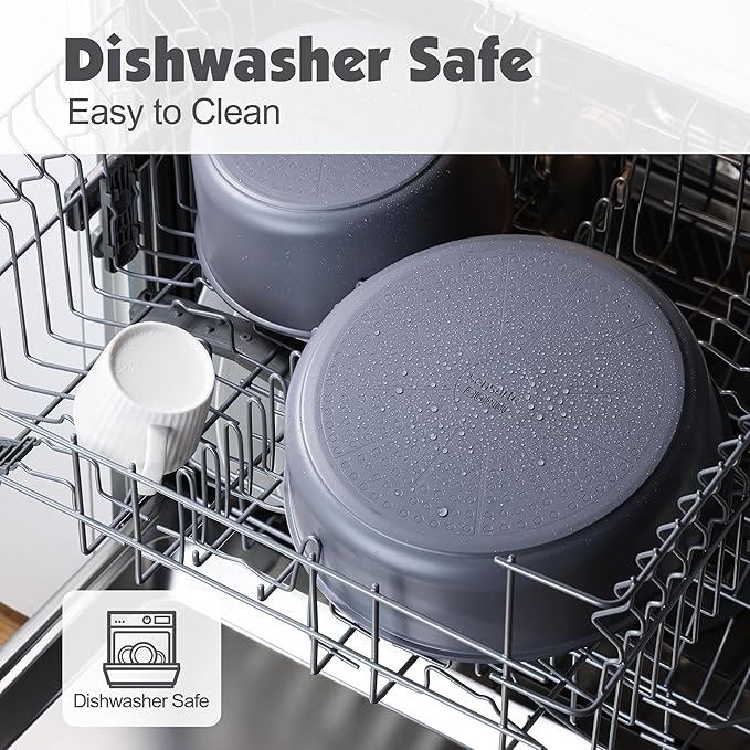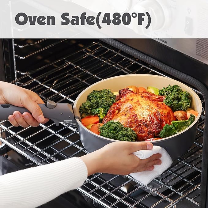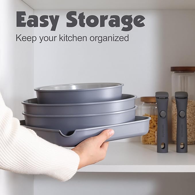 SENSARTE 17 Piece Ceramic Pots and Pans Set, Nonstick Detachable Handle Cookware, Induction Kitchen Cookware Set with Removable Handle, Dishwasher & Oven Safe (Gray)