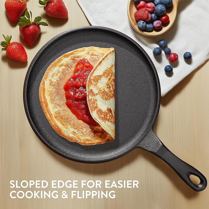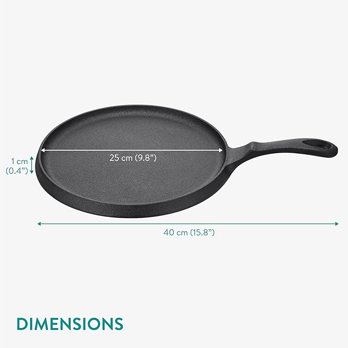 Navaris Cast Iron Griddle Pan - Durable Pancake Pan Also for Pizza, Tortilla, Dosa, Tawa, Roti, etc - Bakestone for Bread & Welsh Cakes - Suitable for Induction Hob, 10" (25.4 cm)