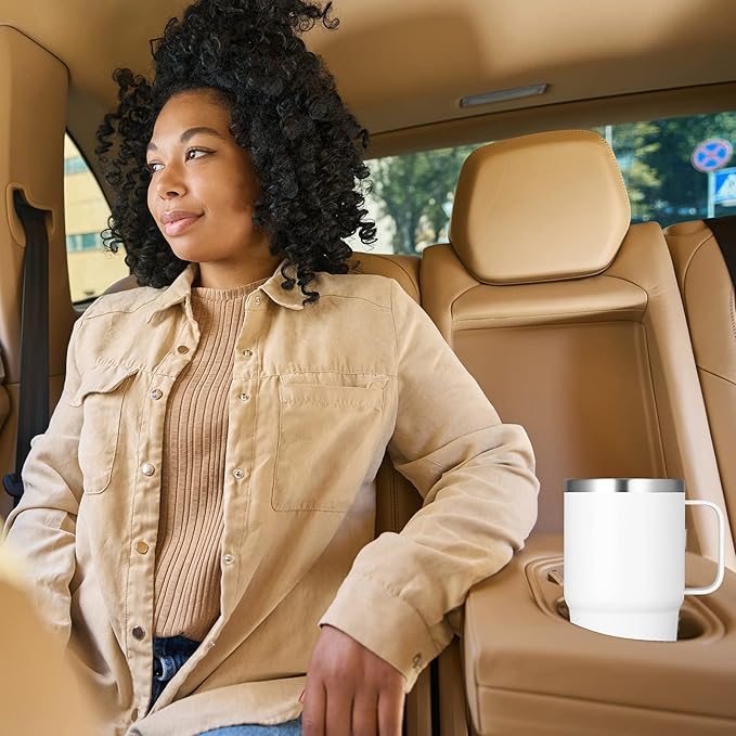 VEGOND 20 oz Tumbler Bulk with Handle Lid and Straw, Stainless Steel Insulated Travel Coffee Mug Set, Spill Proof Double Wall Metal Tumblers Cups, New White 12 Pack