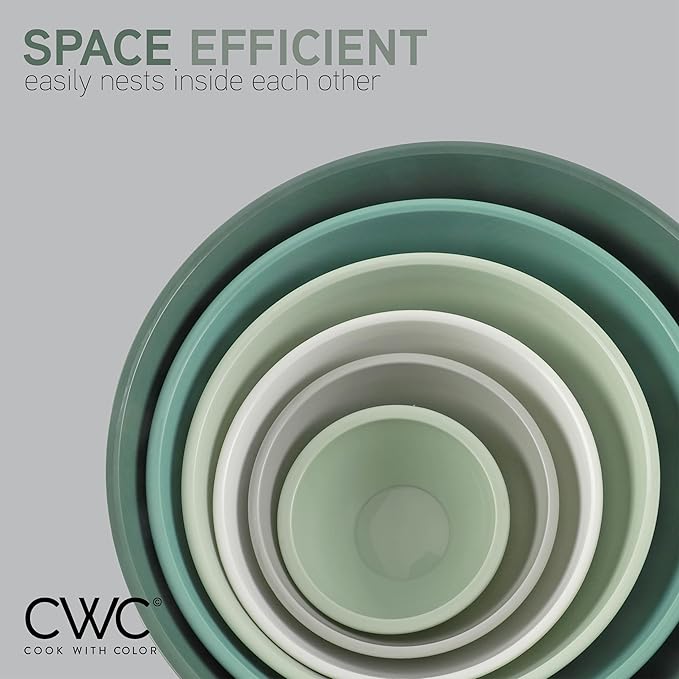 COOK WITH COLOR Mixing Bowls with Lids - 12 Piece Plastic Nesting Bowls Set includes 6 Prep Bowls and 6 Lids, Rhombus Design - Microwave Safe (Sage)