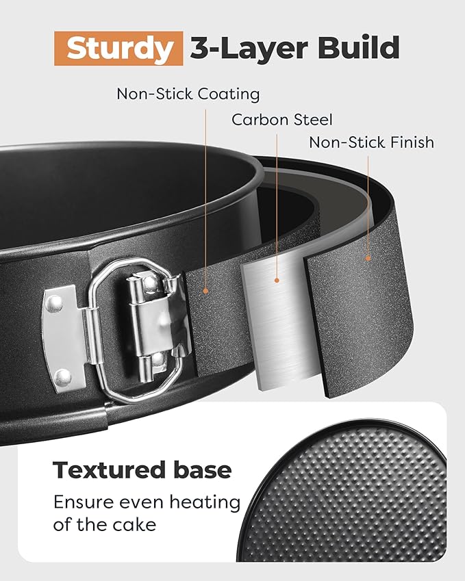 About This Springform Pans Set: Comes with three round cake pans (4", 7", and 9") and 50pcs parchment paper liners.... Read more
