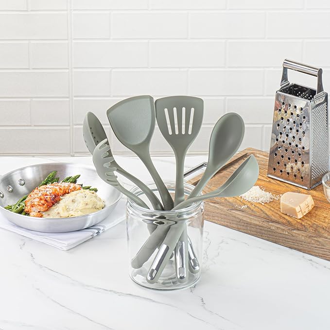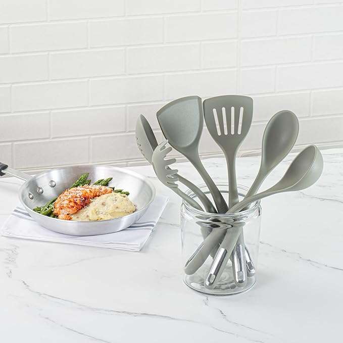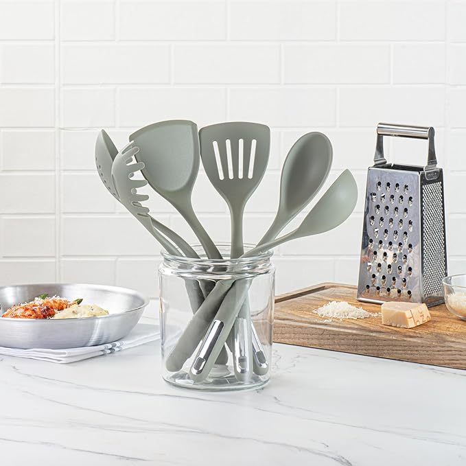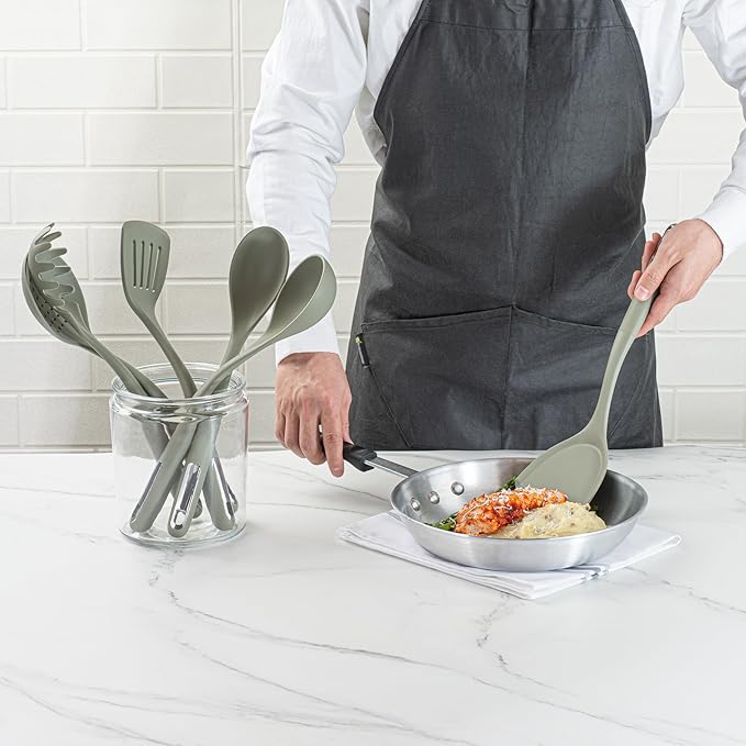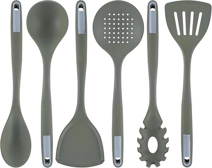 Restaurantware-Met Lux Kitchen Utensil Set, 1 Silicone Utensil Set - Consists 6 Pieces, High-Heat Tolerance, Green Silicone Kitchen Utensils, For No-Stick Cookware