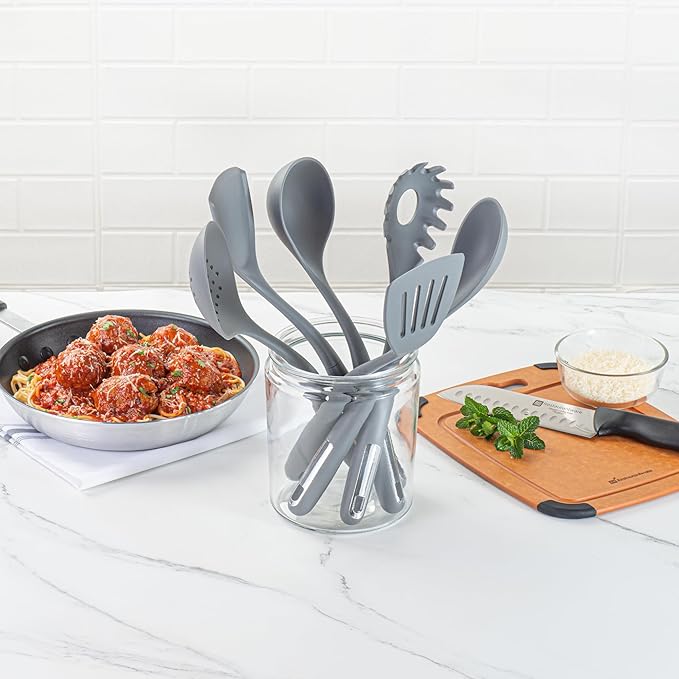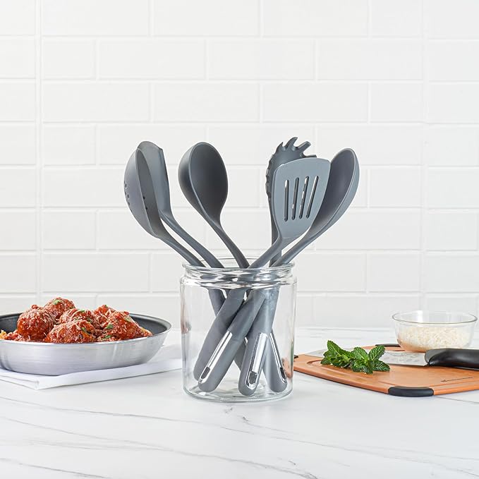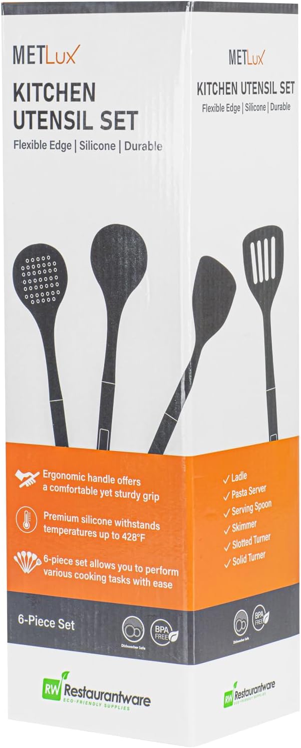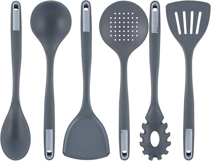 Restaurantware-Met Lux Kitchen Utensil Set, 1 Silicone Utensil Set - Consists 6 Pieces, High-Heat Tolerance, Dark Gray Silicone Kitchen Utensils, For No-Stick Cookware