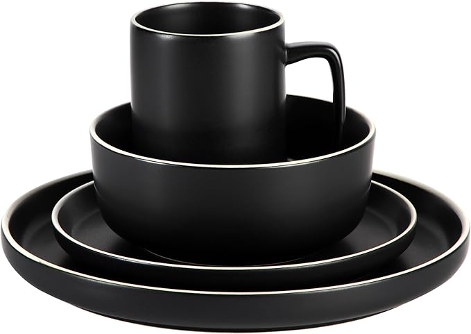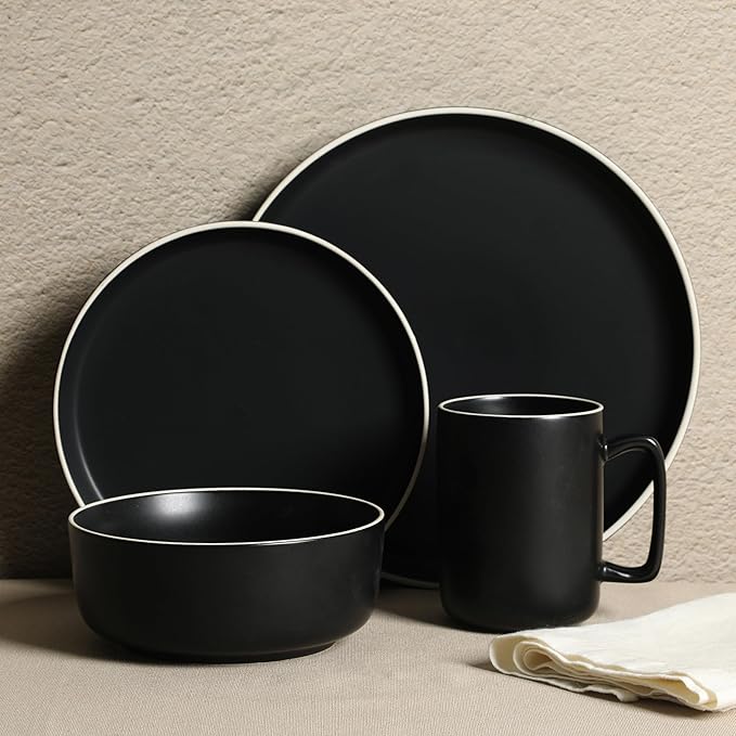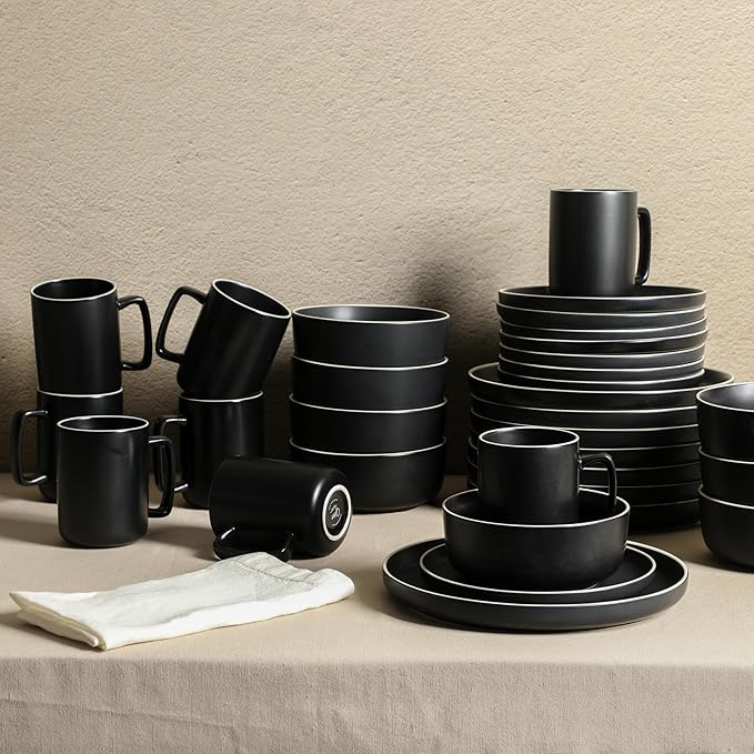 Gibson Home Zuma Nuevo 32 Piece Plates, Bowls, and Mug (Service for 8) Dinnerware Set - Black