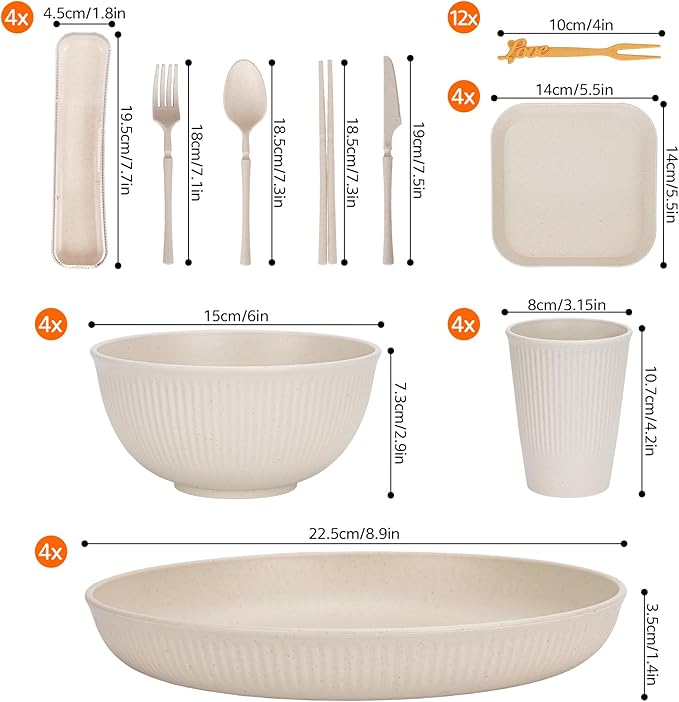 48 Pcs Dinnerware Sets, Unbreakable Plates and Bowls Sets, Reusable Dinnerware Sets for 4 People, Travel Camping Picnic Home Party Cutlery Set, Dishwasher Microwave Safe Dishes
