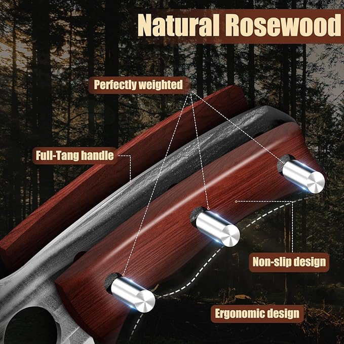 Kitchen Knife Set, Hand Forged Chef Knife Set with Full Tang Wood Handle, High Carbon Steel Butcher Knife Set for Meat Cutting Cleaver Knife Set for Vegetables Camping BBQ Ideal Gifts