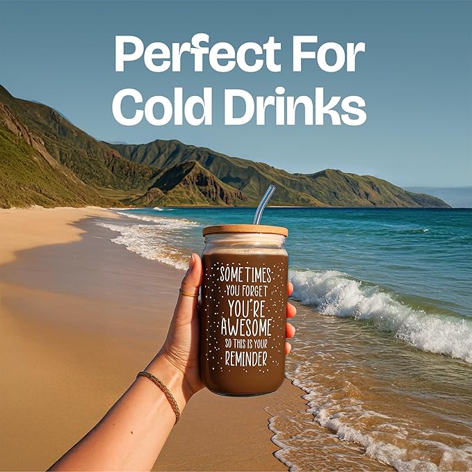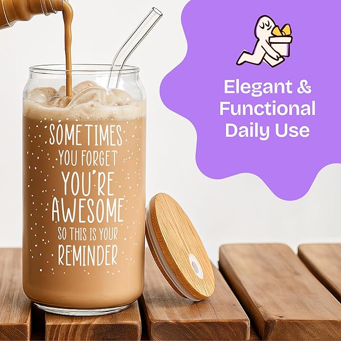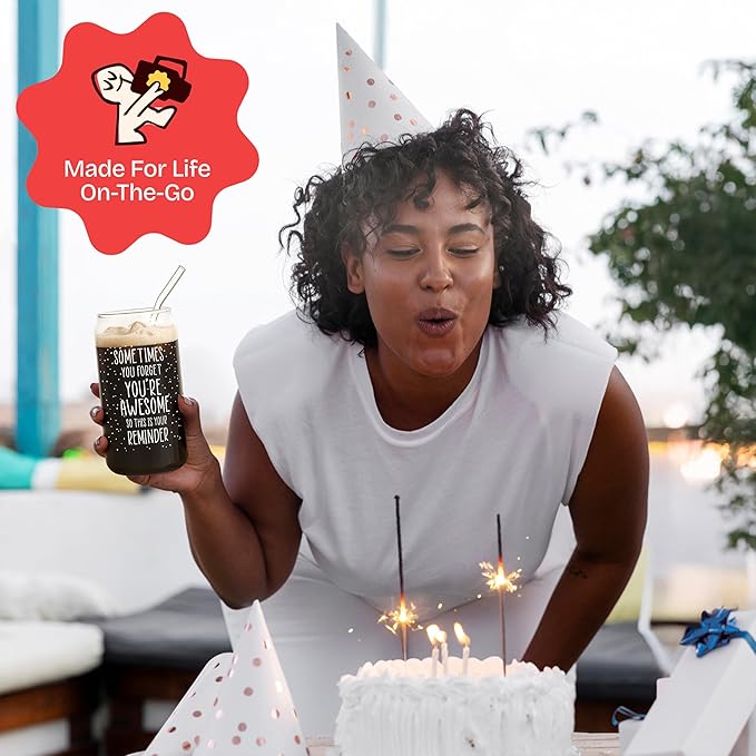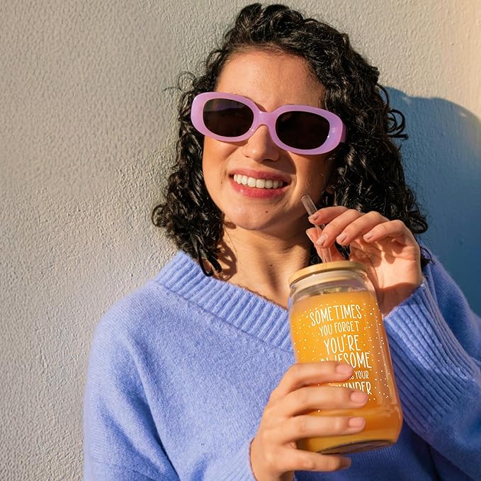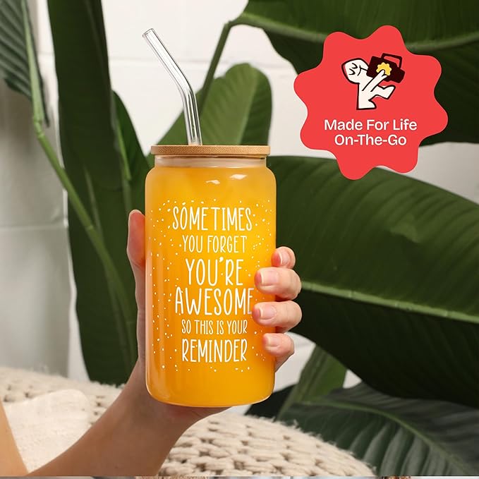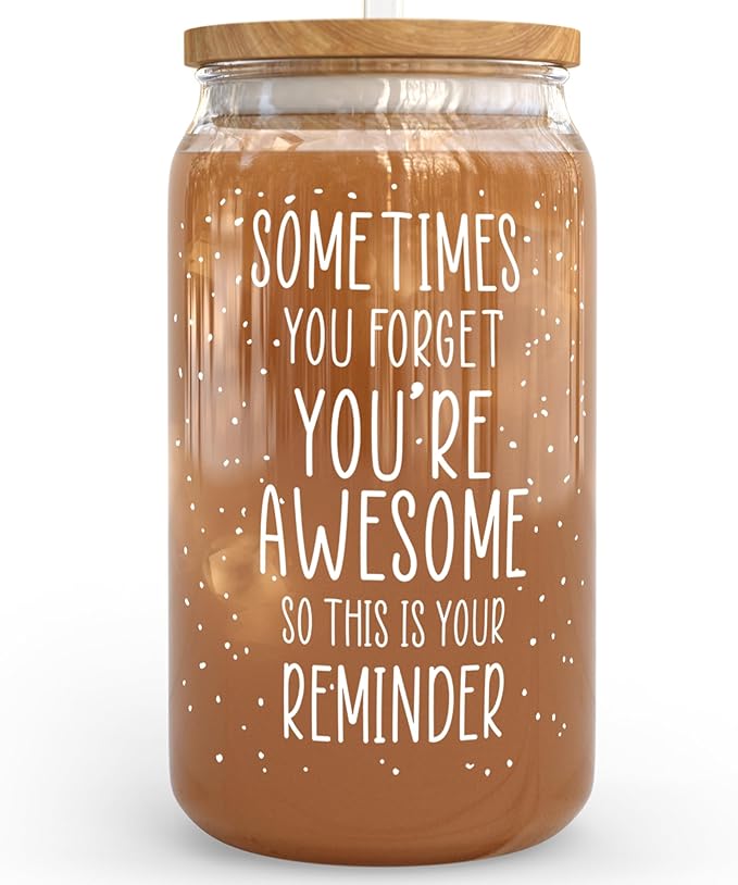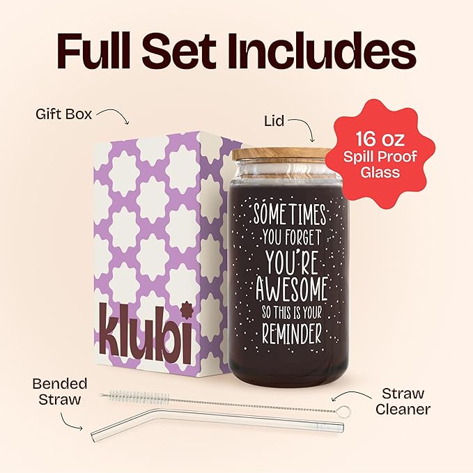 KLUBI Birthday Gifts for Women Who Have Everything - Sometimes You Forget You Are Awesome Gift for Her Birthday Presents for Mom From Daughter 16oz Glass Mug Present Baskets for Fun Teacher