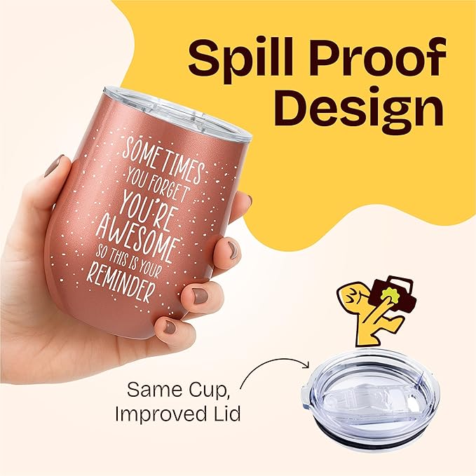 KLUBI Birthday Gifts for Women - Sometimes You Forget You're Awesome 12oz Funny Wine Tumbler With Lid and Straw Self Care Gift for Women Farewell Gifts for Coworkers College Care Package for Girls
