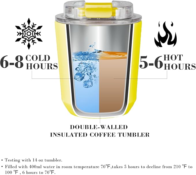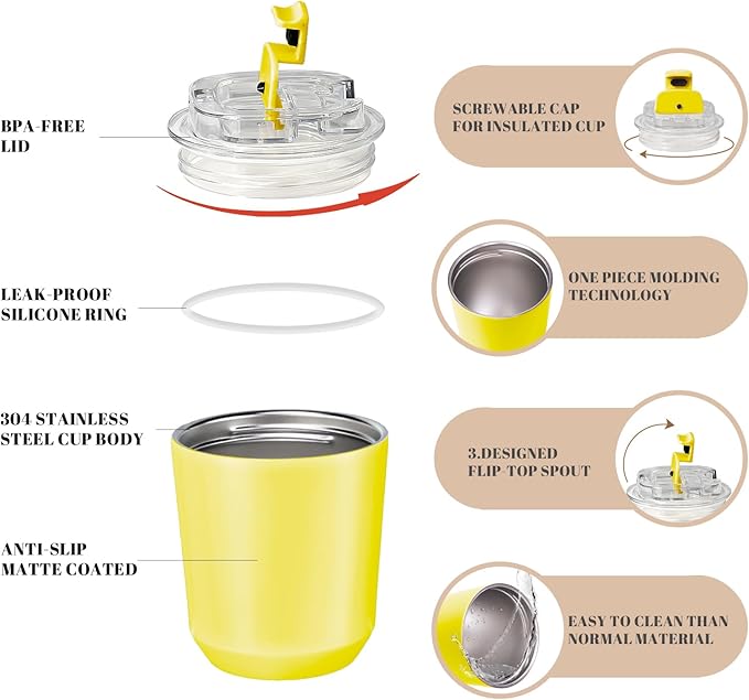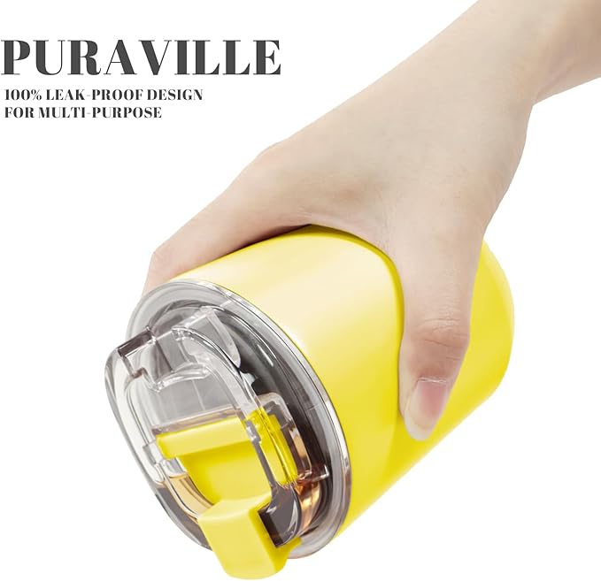 Puraville Insulated Tumblers with Lid, 10 oz Travel Coffee Mug Stainless Steel Vacuum Cup, Leak Proof Reusable Double Walled Coffee Tumbler for Iced and Hot Drinks, Yellow