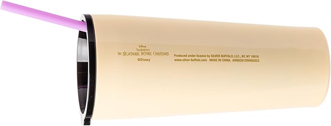 Silver Buffalo Disney Tim Burton's Nightmare Before Christmas “Forever and Always” Featuring Jack Skellington and Sally Double Walled Stainless Steel Tumbler with Straw, 22 Ounces