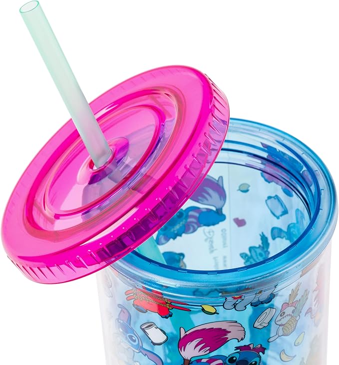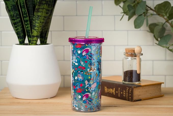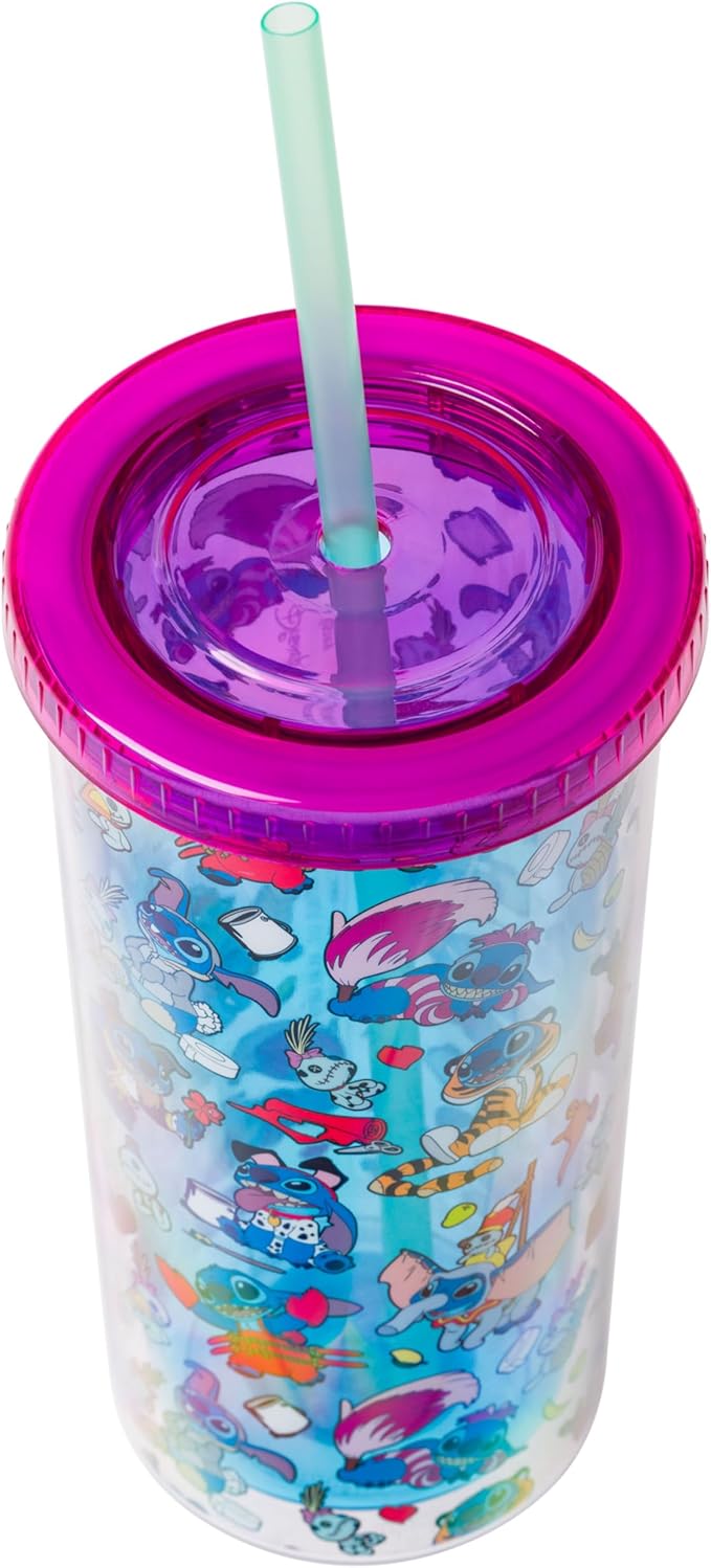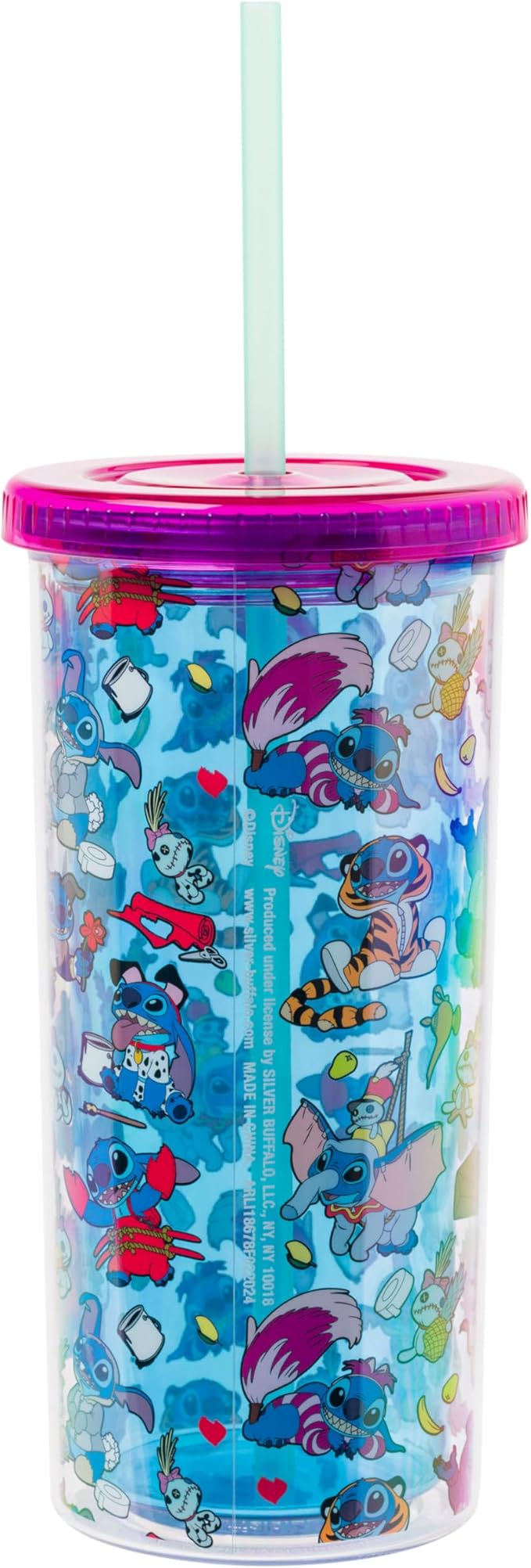 Silver Buffalo Disney Lilo & Stitch Halloween Costumes of Other Disney Characters Featuring Scrump Plastic Tall Cold Cup with Lid and Straw, 20 Ounces