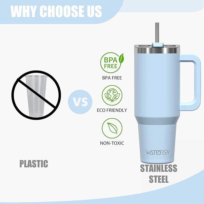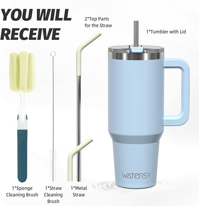 40 oz Tumbler with Handle,Tumbler with Lid and Straw,Double Wall Insulated Cup Stainless Steel Travel Mug(Cold for 34 Hours),Water Bottle for Iced Tea,Coffee,Cold Beverages(Blue)