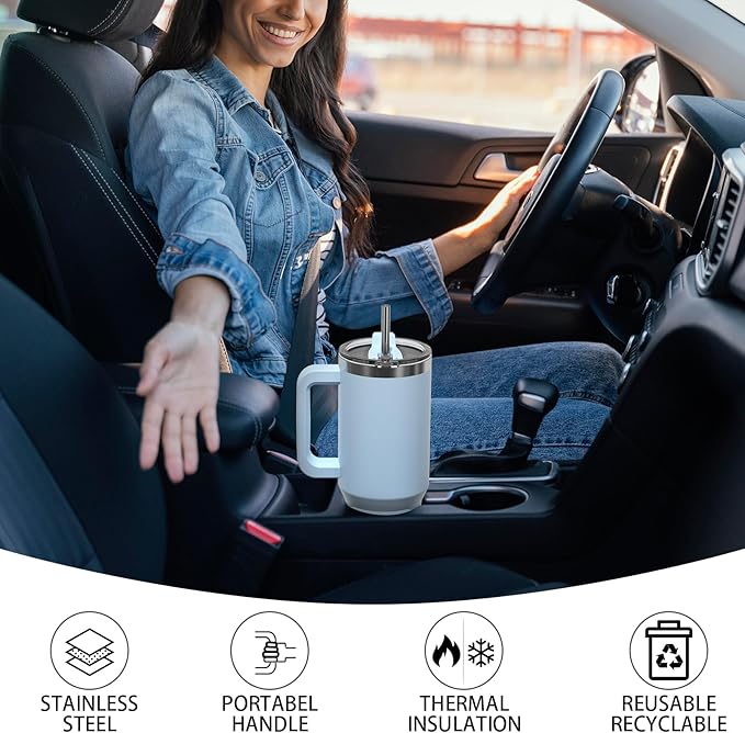 About This 【Easy to Carry】The water bottle can be easily placed in the car cup holder, and the one-handle design... Read more