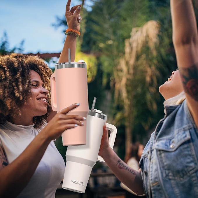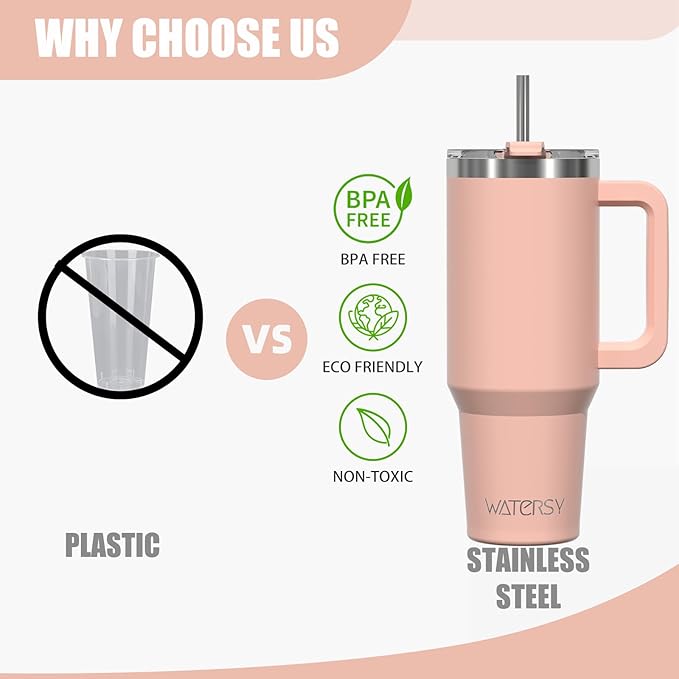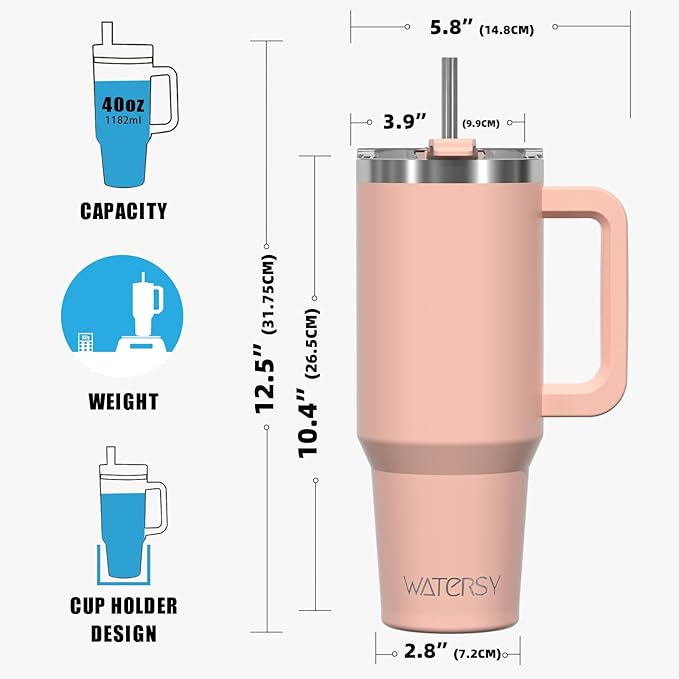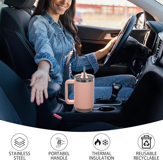 40 oz Tumbler with Handle,Tumbler with Lid and Straw,Double Wall Insulated Cup Stainless Steel Travel Mug(Cold for 34 Hours),Water Bottle for Iced Tea,Coffee,Cold Beverages(Pink)