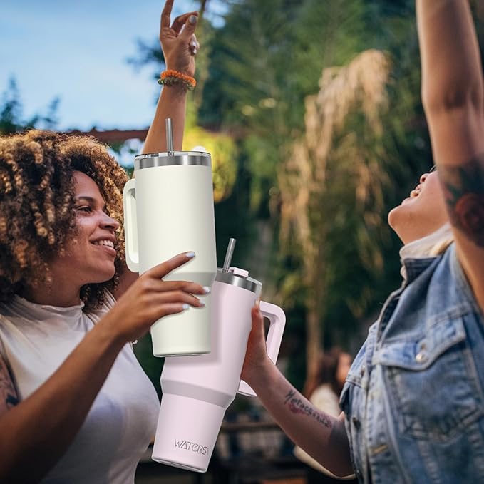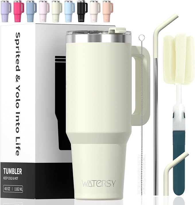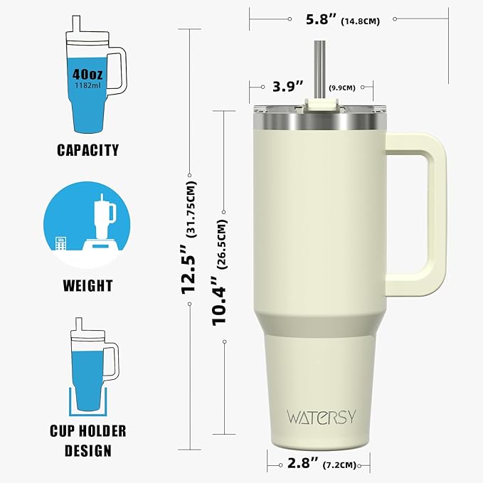 40 oz Tumbler with Handle,Tumbler with Lid and Straw,Double Wall Insulated Cup Stainless Steel Travel Mug(Cold for 34 Hours),Water Bottle for Iced Tea,Coffee,Cold Beverages(Cream White)