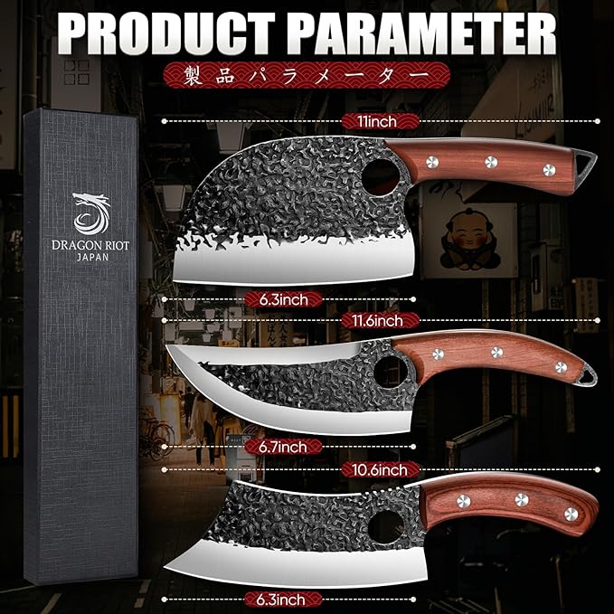 About This 【Professional Butcher Knife Set Multi-functional】 The DRAGON RIOT meticulously crafted Kitchen Knife Set includes: Serbian chef's knife,Cleaver knife,... Read more