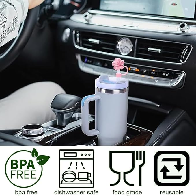 Silicone Straw Caps for 10mm Tumblers | Reusable Dust-Proof Straw Toppers Compatible with Stanley 30oz & 40oz Tumbler (pink 3p)