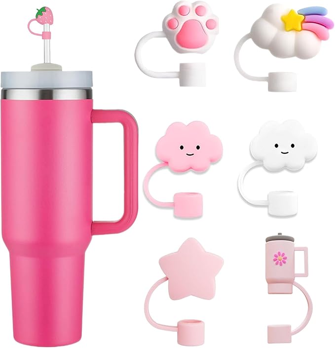 7Pc Straw Cover for Stanley Cup, Silicone Straw Topper for Stanley Cup 30&40oz with Tumblers, 10mm 0.4in Lid Accessories (Reusable)