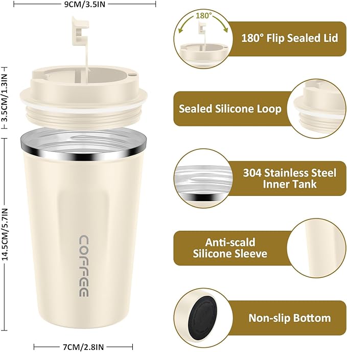CS COSDDI 12 oz Stainless Steel Vacuum Insulated Tumbler - Coffee Travel Mug Spill Proof with Lid - Coffee Cups for Keep Hot/Ice Coffee,Tea and Beer