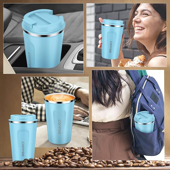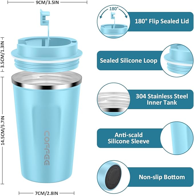 • Leakproof Design - The coffee mug lid comes with an airtight silicone seal that prevents the drinks from spilling. Air Vent on the lid allows beverages to flow out smoothly, without gushing or overflowing.The rubber design at the bottom prevents the cup from slipping or tipping.
