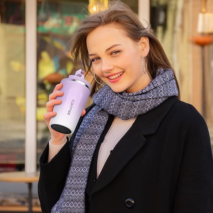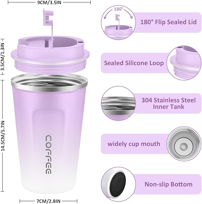 • Leakproof Design - The coffee mug lid comes with an airtight silicone seal that prevents the drinks from spilling. Air Vent on the lid allows beverages to flow out smoothly, without gushing or overflowing.The rubber design at the bottom prevents the cup from slipping or tipping.