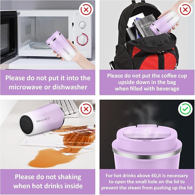 • Use Notes - The coffee cup buckle can be closed tightly after two "clicks",Hand wash only, the dishwasher is not recommended.cannot put in the microwave.