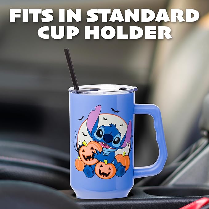 Silver Buffalo Disney Lilo and Stitch Halloween Spooky Pumpkin Jack-O-Lantern Stainless Steel Tumbler with Handle and Straw, Fits in Standard Cup Holder, 40 Ounces