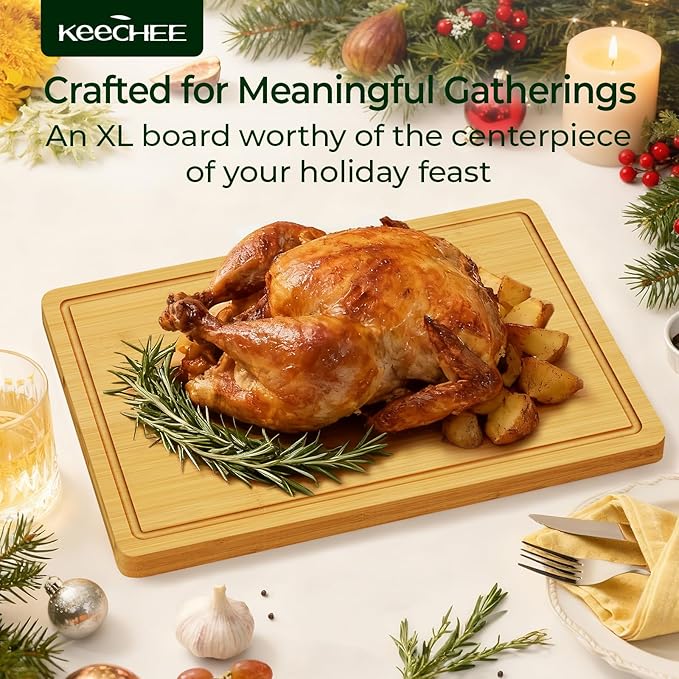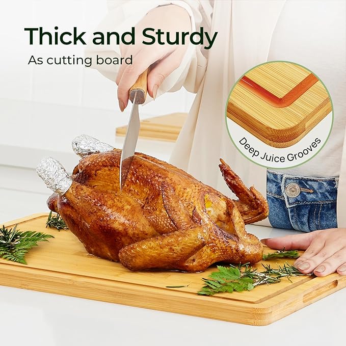 Kitchen Essentials Natural Bamboo Cutting Board XL With Durable, Knife-Friendly Surface & Deep Juice Groove β Perfect For BBQ(Pre Oiled, Natural)