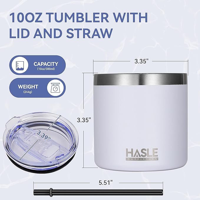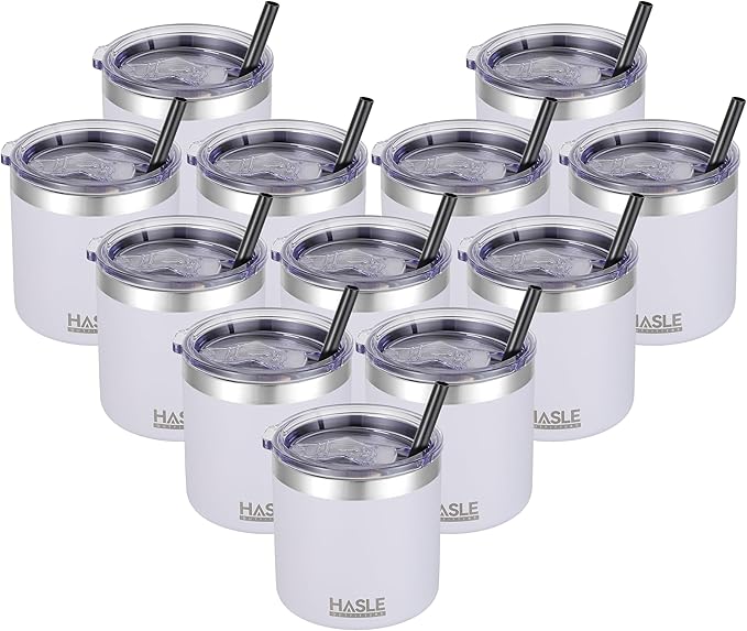 HASLE OUTFITTERS 10oz Insulated Tumblers with Lid and Straw,Stainless Steel Tumbler Travel Coffee Mug,Double Wall Reusable Tumbler Cup for Iced and Hot Drinks(White,12 Pack)