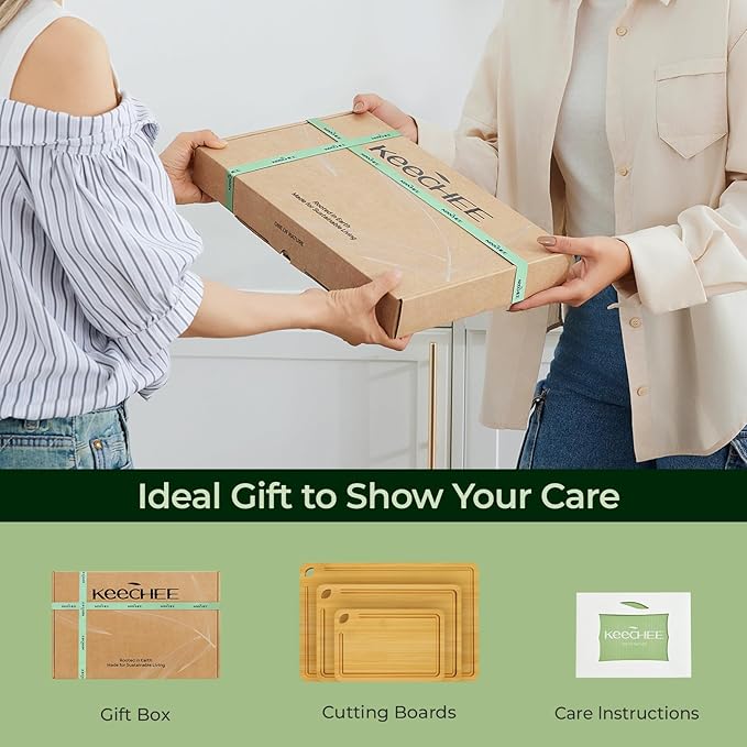 Wood Cutting Board for Kitchen - Reversible Bamboo Cutting Boards Gift Set of 3 with Juice Groove, Wooden Chopping Board for Meat, Fruit, Vegetables & Cheese (Pre Oiled, Natural)