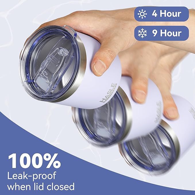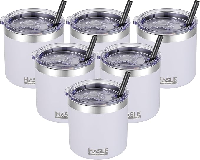 HASLE OUTFITTERS 10oz Insulated Tumblers with Lid and Straw,Stainless Steel Tumbler Travel Coffee Mug,Double Wall Reusable Tumbler Cup for Iced and Hot Drinks(White,6 Pack)