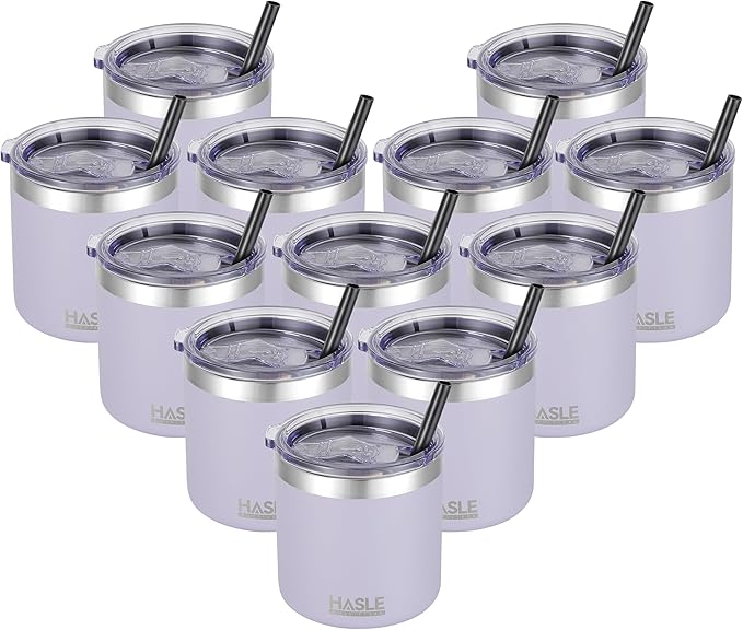 HASLE OUTFITTERS 10oz Insulated Tumblers with Lid and Straw,Stainless Steel Tumbler Travel Coffee Mug,Double Wall Reusable Tumbler Cup for Iced and Hot Drinks(Purple,12 Pack)