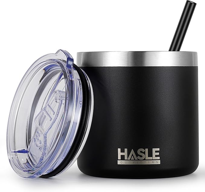 HASLE OUTFITTERS 10oz Insulated Tumblers with Lid and Straw,Stainless Steel Tumbler Travel Coffee Mug,Double Wall Reusable Tumbler Cup for Iced and Hot Drinks(Black,1 Pack