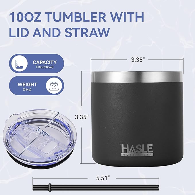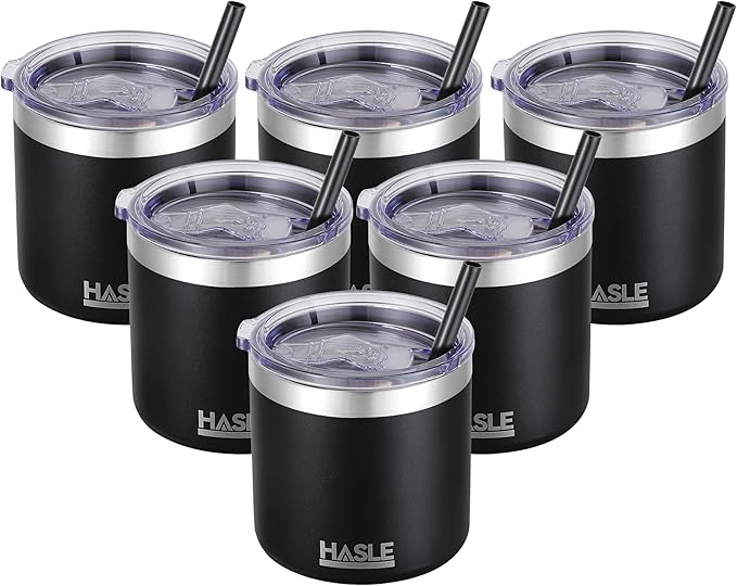 HASLE OUTFITTERS 10oz Insulated Tumblers with Lid and Straw,Stainless Steel Tumbler Travel Coffee Mug,Double Wall Reusable Tumbler Cup for Iced and Hot Drinks(Black,6 Pack)