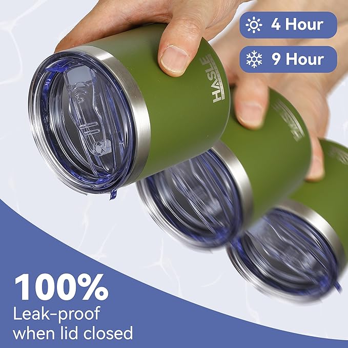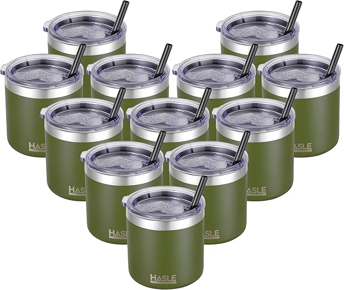 HASLE OUTFITTERS 10oz Insulated Tumblers with Lid and Straw,Stainless Steel Tumbler Travel Coffee Mug,Double Wall Reusable Tumbler Cup for Iced and Hot Drinks(Army Green,12 Pack