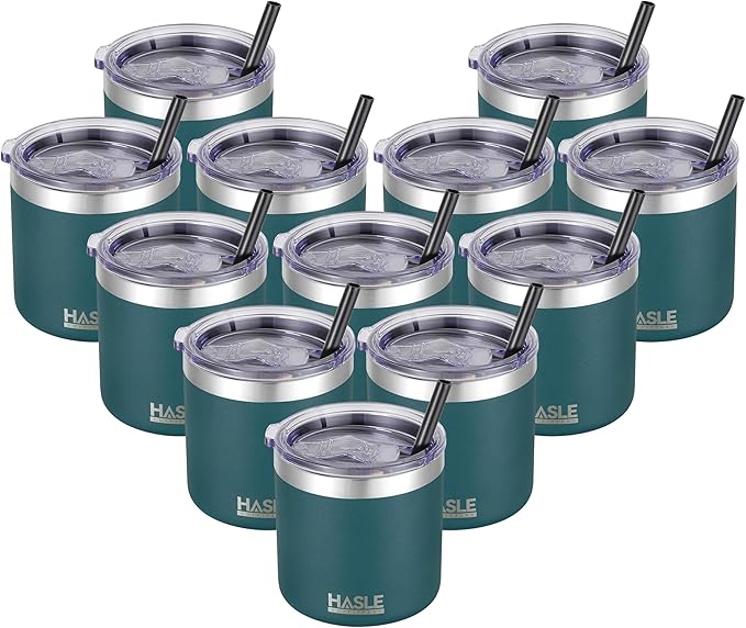 HASLE OUTFITTERS 10oz Insulated Tumblers with Lid and Straw,Stainless Steel Tumbler Travel Coffee Mug,Double Wall Reusable Tumbler Cup for Iced and Hot Drinks(Dark Green,12 Pack)
