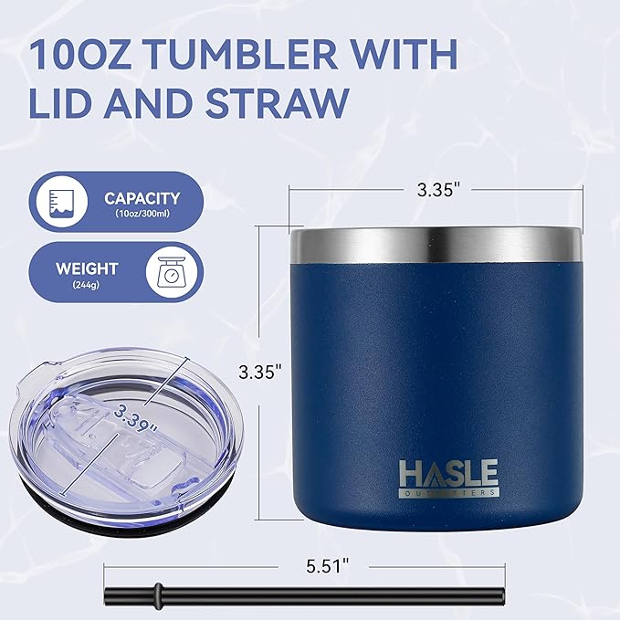 HASLE OUTFITTERS 10oz Insulated Tumblers with Lid and Straw,Stainless Steel Tumbler Travel Coffee Mug,Double Wall Reusable Tumbler Cup for Iced and Hot Drinks(Navy,12 Pack)